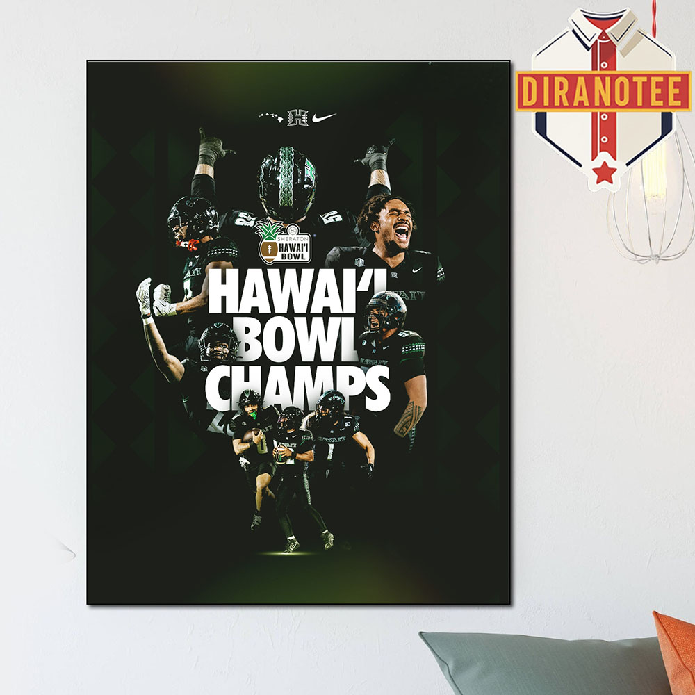 Hawaiʻi Rainbow Warriors Football 2025 Hawaiʻi Bowl Champions Home Decor Poster Canvas Features: