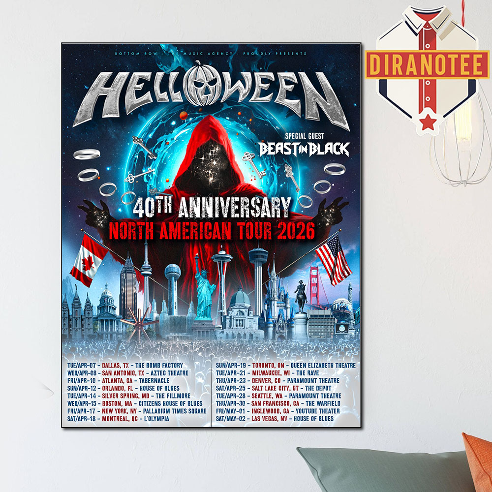 Helloween 40th Anniversary North American Tour 2026 Schedule Home Decor Poster Canvas