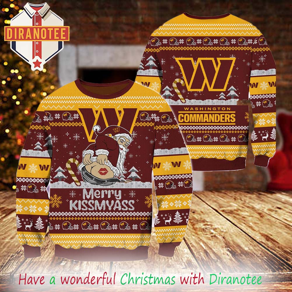 Washington Commanders NFL 2025 Merrykissmyass Funny Santa Claus Xmas Ugly Christmas Sweater